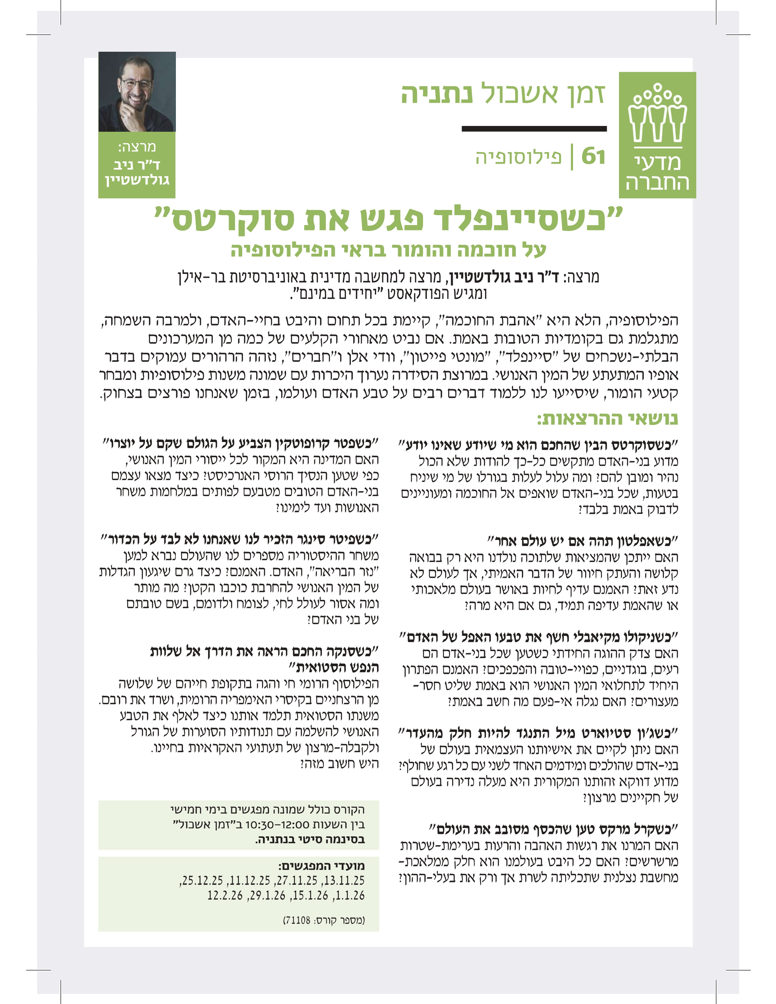 ומה אם אספר לכם שפילוסופיה (כשיודעים כיצד ללמד אותה) היא הדבר הכי מעניין שיש? ליצירת קשר והזמנת הרצאות: Nowhereman11@gmail.com אהבתם? מוזמנים לשתף! לשתף ב-X (נפתח בחלון חדש) X שתף בפייסבוק (נפתח בחלון חדש) פייסבוק אהבתי טוען...